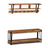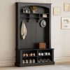 Bellemave 59″W Farmhouse Hall Tree with Storage Shelves and Shoes Rack Multi-functional Coat Rack with Hooks Entryway Shoes Storage Seating Bench Coat Hanger for Hallway (Black, With Shoes Rack)