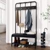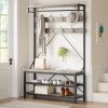 ANJORALA 4-in-1 Coat Rack with Bench, Industrial Entryway Hall Tree with 2 Tier Shoe Rack,Black