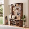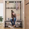 5-in-1 Entryway Bench with Coat Rack, Hall Tree with Bench and Shoe Storage, Rustic Brown