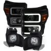 AKKON – Fits 2011-2016 Ford F250 F350 F450 F550 Super Duty Black Headlights + Smoked Bumper Fog Lights Lamps