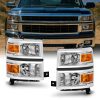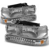 AKKON – For 99-02 Chevy Silverado Chrome Clear Headlights Replacement + LED Bumper Signal Lights 4pcs Set