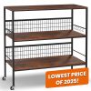 Behost 3-Tier Rolling Cart Microwave Stand with 10 Hooks, Coffee Bar Kitchen Storage Rack Organizer, Rustic Brown
