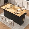 Harper & Bright Designs Kitchen Island with Extendable Dining Table, Kitchen Storage Cart with Drawers and Internal Storage Rack, Rolling Kitchen Island with Power Outlet, Black