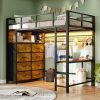 Afuhokles Twin Size Loft Bed with Desk and 8 Storage Drawers and Charging Station, Metal Loft Bed Twin with LED Lights, Storage Shelves, Black