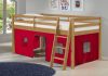 JACKPOT! Castle Low Loft Bed with Slide, Red Yellow and Blue Tent and Tower, Twin, Cherry