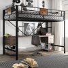 Sifurni Black Heavy Duty Twin Size Metal Loft Bed with Full-Length Guardrail & Removable Stairs