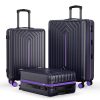 3 Piece ABS Luggage Set, Luggage with Spinner Wheel & TSA 20/24/28 inch, Purple