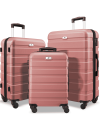 3 Piece Luggage Sets Hard Shell Suitcase Set with Spinner Wheels for Travel Trips Business 20″ 24″ 28″, Rose Gold
