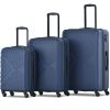 3 Piece Luggage Sets ABS Hardshell Lightweight Suitcase with TSA Lock and Double Spinner Wheels ,Deep Blue