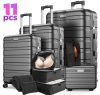 11Pcs Hardshell Luggage Set, Lightweight Suitcases w/ Spinner Wheels, Carry on Luggage, Black