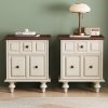 20.47″Vintage Nightstand with 2 Drawers and Roman Column Legs, Solid Wood Bedside End Table, Bedside Cabinet for Bedroom, Living Room(Set of 2)