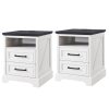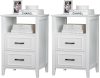 ACCOHOHO Nightstands Set of 2 with Charging Station, Rustic End Table with 2 Drawers Farmhouse Side Table with 3-tier Storage for Bedroom Living Room, White