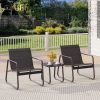 Noelse 3 Piece Outdoor Rocking Bistro Set, Textilene Fabric Patio Furniture Set with Heat-Resistant Armrests and Coffee Table for Lawn, Balcony, Brown