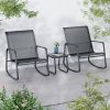 Aiho Outdoor Rocking Chairs Set of 3 with Breathable Textilene, Outdoor Patio Furniture Set with Tempered Glass Table, For Patio, Outdoor Garden, Lawns, Balcony, Backyard, Porch and Poolside-Black