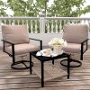 Ainfox 3-Piece Steel Outdoor Bistro Sets with Metal Chairs and Glass Top Table, Beige