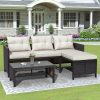 3 PCS Patio Sectional Sofa Conversation Set, All Weather Rattan Patio Furniture Set, Brown Outdoor Chaise Lounge Set with Cushion and Table, Deck Backyard Porch Furniture