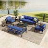 Ataucjin 5 Pieces Aluminum Patio Furniture Set, Outdoor Sectional Conversation Set Sectional Sofa with 4″ Armrest & 5″ Thick Cushions & Coffee Table(ship in 4 boxes)