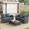4 Pieces Patio Conversation Set, Outdoor Furniture Set with Cushion, Outside Sectional Rattan Wicker Sofa Furniture Set for Garden, Porch, Backyard, Gray