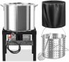 32QT Stainless Steel Seafood Boil Pot with 200,000BTU Single Burner Propane Stove, Heavy Duty Propane Burner For Outdoor Cooking Turkey Fryer, Crawfish Boil, Homebrewing