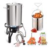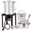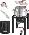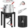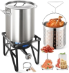 64QT Stainless Steel Pot with 200,000BTU Propane Fryer, Seafood Boil Pot, Crab Boil Pot, Lobster Pot, Shrimp Boil Pot, Tamale Steamer Pot with Basket and Turkey Fryer Burner