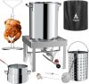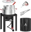 2024 New 30 Qt Turkey & 10 Qt Fish Fryer Boiler Steamer Set, Aluminum Turkey Deep Fryer Pot, 38, 000 BTU Outdoor Propane Stove Stand for 20 Lbs Turkey, Thermometer, Turkey Rack & Lifting Hook