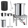 30QT Stainless Steel Turkey Fryer Kit, Stainless Steel Stand with 55,000BTU Propane Burner Stove, Waterproof Cover & Skimmer, Turkey Deep Fryer Pot, Outdoor Fish Fryer, Crawfish Boiler
