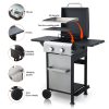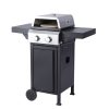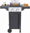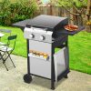 2-Burner Propane Gas BBQ Grill with Wire Enamel Cooking Grids & Pizza Box, 24,600 BTU Output Stainless Steel Grill with Foldable Side Table for Outdoor Backyard Barbecue