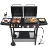 36900BTU Gas Propane Grill, 2-IN-1 Combo Grill Propane Gribble w/ Foldable Side Table, Outdoor BBQ Grill with Stainless Steel Plate, Hanging Basket