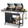 2 in 1 Propane Gas Grill and Griddle Combo, 4 Burner Griddle Grill Combo with Folding Side Tables & Hanging Basket, 49,200BTU Stainless Steel Propane Grill for Outdoor Cooking