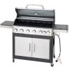 4-Burner Propane Gas BBQ Grill, 34200BTU Output With Wire Enamel Cooking Grids For Outdoor Barbecue, Foldable Side Table, Hanging Basket, Stainless Steel