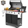 4-Burner BBQ Grill W/Side Burner, 50,000BTU Gas Propane Grill Portable with Storage Cabinet, Heavy-Duty Stainless Steel Outdoor Cooking, with Tank Hook, Towel Rack, Steel Brush