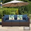 Decksplore All Weather Wicker Patio Couch, 3 Seats Patio Sofa with High Curvy Back, Premium Outdoor Sofa with Brown Wicker and Thick Cushions for Garden, Backyard, Porch Navy Blue