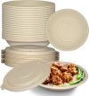 [25 Pack] 32 oz Round Disposable Compostable Paper Bowls with Dome Lids Heavy-Duty, Eco-Friendly Natural Bagasse Unbleached, Heat Resistant, 100% Biodegradable Salad Bowls Alternative to Plastic