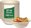 100 Pack 32oz Paper Bowls Heavy-Duty,Disposable Bowls for Hot Soup,Biodegradable Compostable Bagasse Paper Bowls