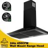 36-inch Wall Mount Range Hood 450CFM 3-Speed, Stainless Steel with LED Light, Adjustable Chimney 15.7-30.7in, Ducted/Ductless Ready, Quiet Under 55dB, 5-Layer Filters