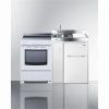 36″ wide all-in-one kitchenette with 2-burner 115V smooth-top cooktop, refrigerator-freezer, sink, and storage cabinet