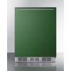 ADA height 24″ refrigerator-freezer for residential use with emerald green door, stainless steel handle, and white cabinet