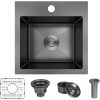 15 x 15 Inch Black Drop In Kitchen Bar Sink, Small Kitchen Sink Single Bowl Topmount Bar Prep Sink 18 Gauge Stainless Steel Bar Sink with Grid and Basket Strainer