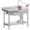 2024 New Stainless Steel Free Standing Utility Sink – Commercial Kitchen Sink, with Pull-Out Faucet, Designed for Restaurant, Workshop, and Laundry