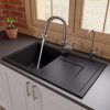 ALFI brand AB1620DI-BLA Black 34″ Single Bowl Granite Composite Kitchen Sink with Drainboard
