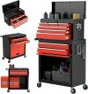 Aukfa Tool Box, 2-in-1 Rolling Tool Chest & Cabinet on Wheels for Garage Workshop, 5-Drawer, Red&Black