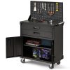 AECOJOY Metal Steel Mobile Tool Cart with Storage Drawer Tool Chest On Wheels Tool Box Garage Organizer for Workshop Warehouse Garage, Black Handle