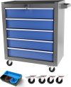 Aukfa Tool Box, 2 in 1 Steel Rolling Tool Chest & Cabinet On Wheels for Garage, 5-drawer, Blue
