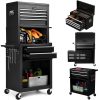 Aukfa Tool Box, 3 in 1 Steel Rolling Tool Chest w/ 6-Drawers & 2 Cabinet for Garage Workshop, Black