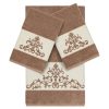 Authentic Hotel and Spa Latte Brown Turkish Cotton Scrollwork Embroidered 3 piece Towel Set