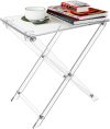 Acrylic Folding TV Tray Table – 23″ High Acrylic Table, Foldable Desks for Small Spaces, Living Room, Bed Room, TV Dinner Table with Easy Assembly, 1PCS Transparent Rectangle Acrylic Tray