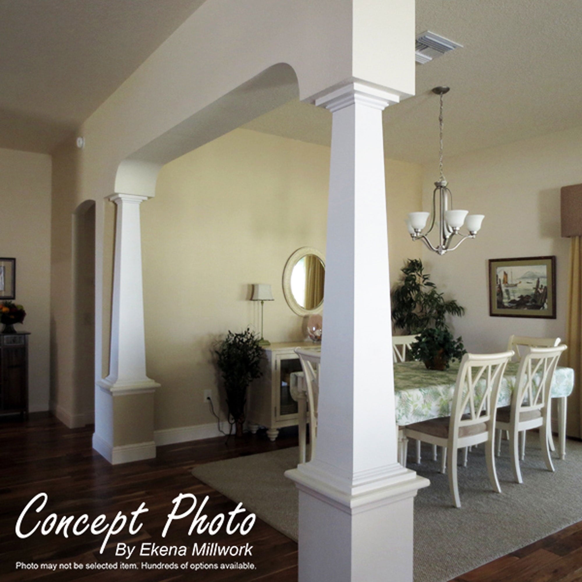 The square column, a timeless style is now available in expanded cellular PVC for quick, easy assembly and virtually maintenance-free! Classic Craftsman Series Columns are not prone to the same environmental damage as real wood, such as splitting or cracking. Their E-Z Lock joints will not separate due to disproportionate changes in panel dimensions. When two coats of acrylic latex paint are applied, Classic Craftsman Series Columns will deliver years of service as promised by their Limited Lifetime Warranty against rot, corrosion, and moisture damage. Base: 8 1/8″ Outside Width Cap: 8 1/8″ Outisde Width Bottom Shaft: 6″ Inside Width Top Shaft: 6″ Inside Width