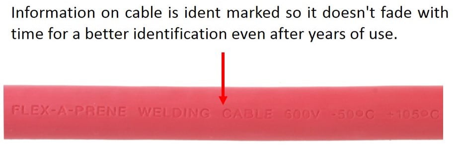• Information on cable is ident marked so it doesn’t fade with time for a better identification even after years of use – Resists abrasion, cut, tear, flame, grease, oil and water