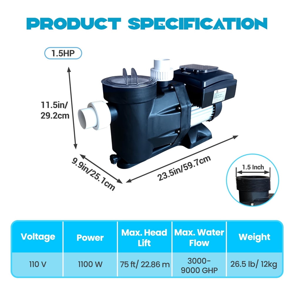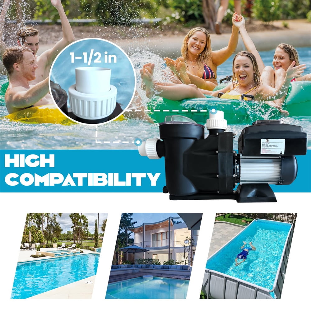 - 【Versatile for All Pool Types】:Designed for both in-ground and above-ground pools, this 1.5 HP pool pump is perfect for swimming pools, hot tubs, spas, and irrigation systems. Its advanced engineering includes specially designed impellers that maximize flow while minimizing noise, ensuring you can enjoy your pool without distractions.