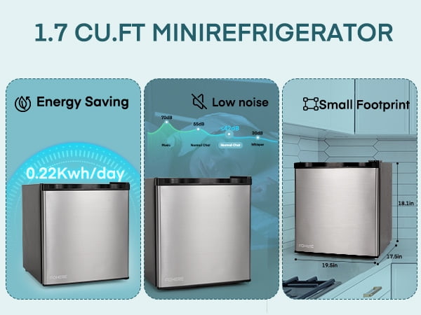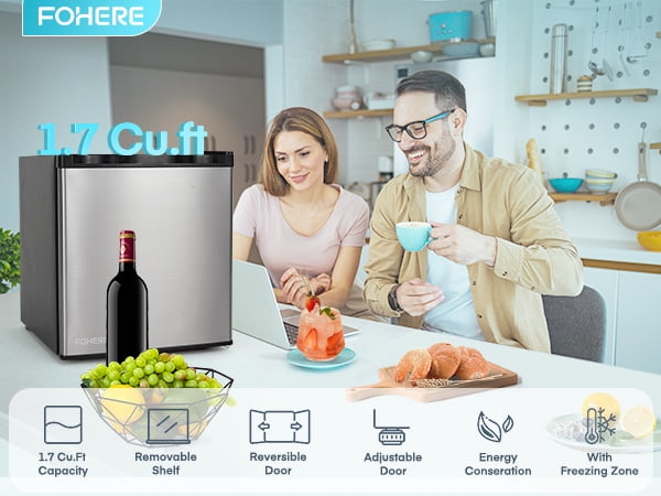 Home Refrigerators 1.6 Cu.ft Mini Refrigerator with 7 Temp Control, FOHERE Compact Fridge with Freezer, Low Noise, Stainless Steel